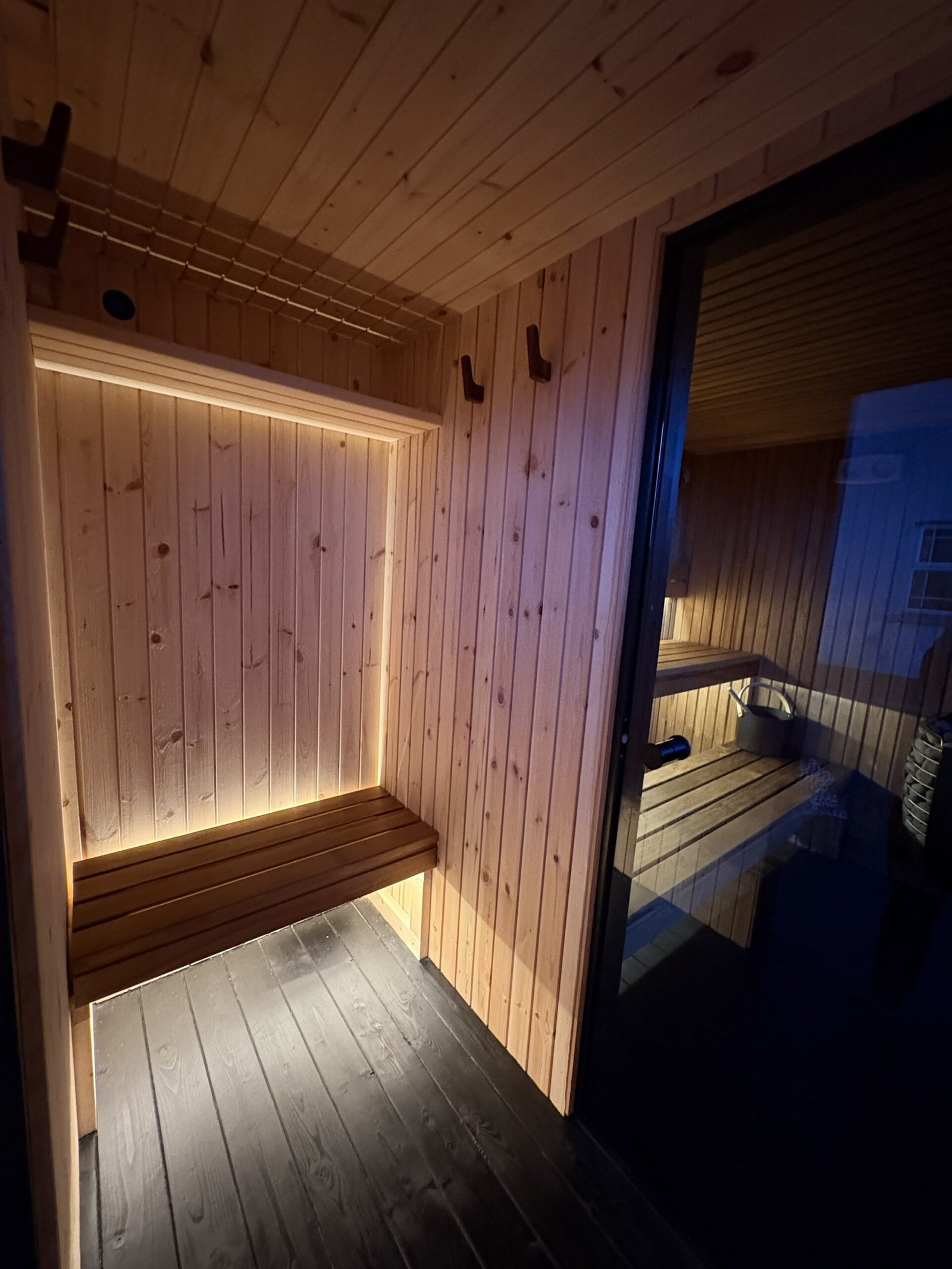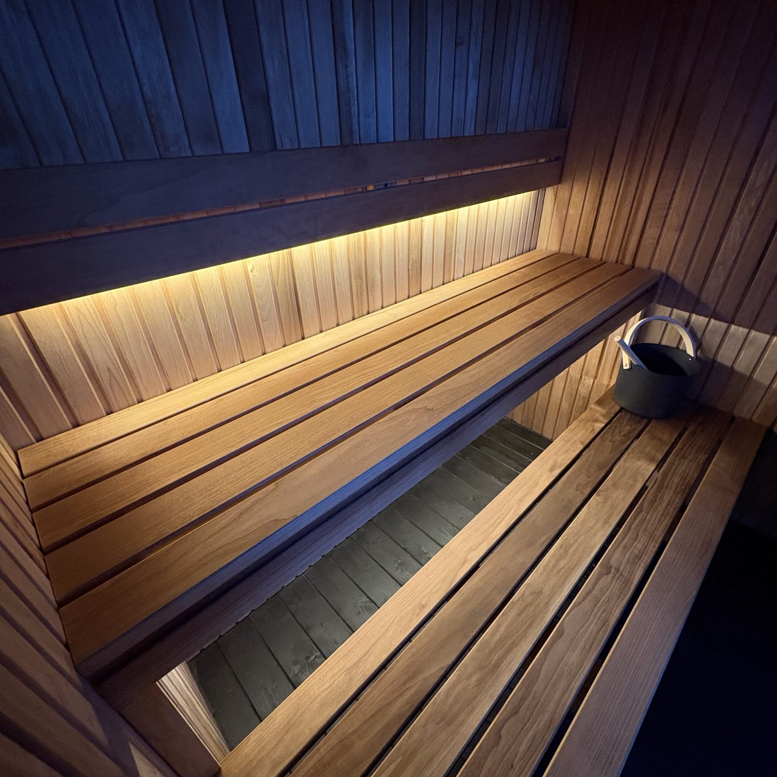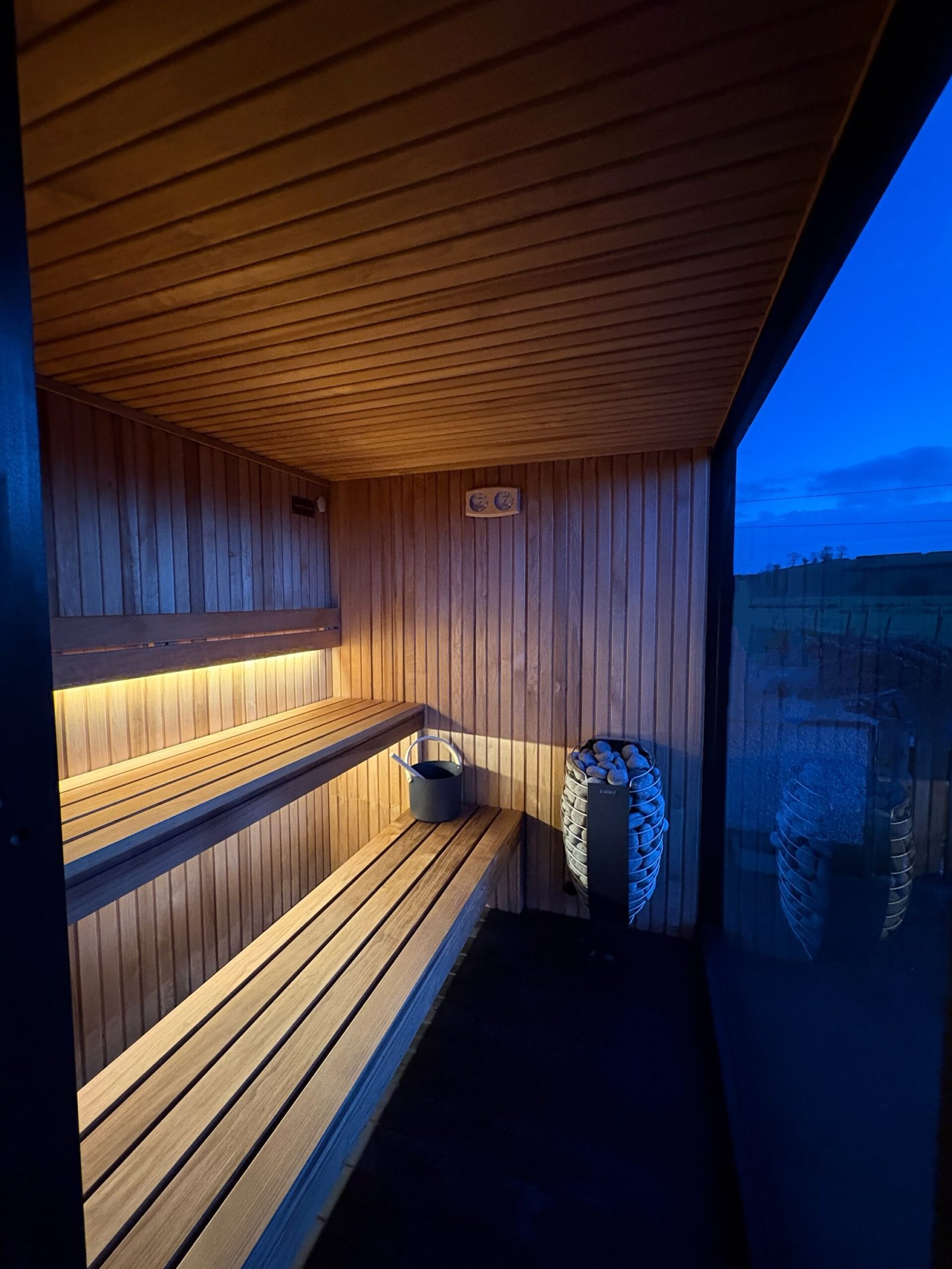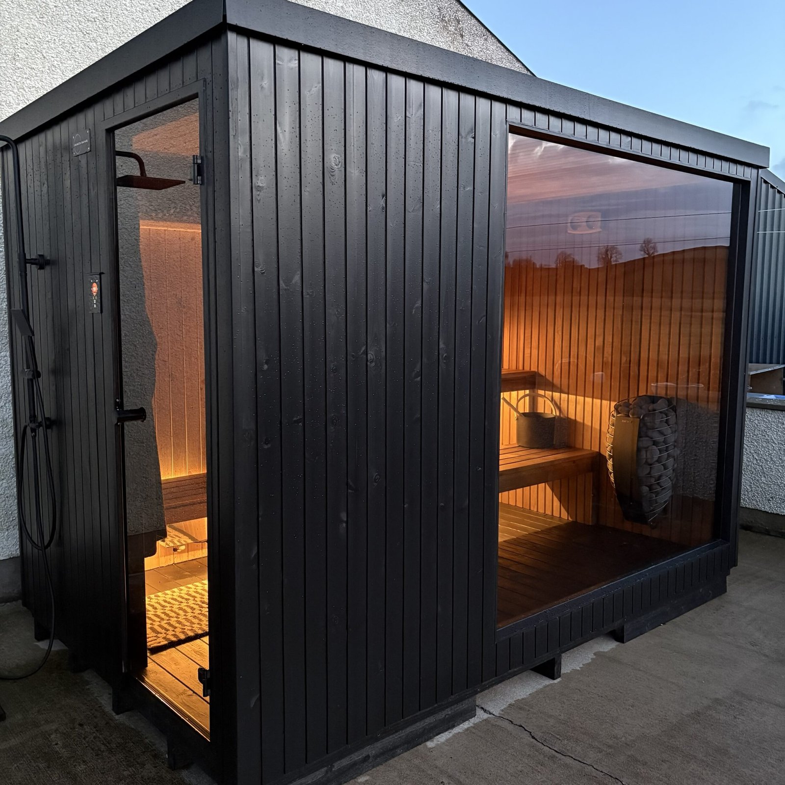 • Black Wooden Flooring – treated with sauna specific tinted wax for a durable finish with a luxury feel.